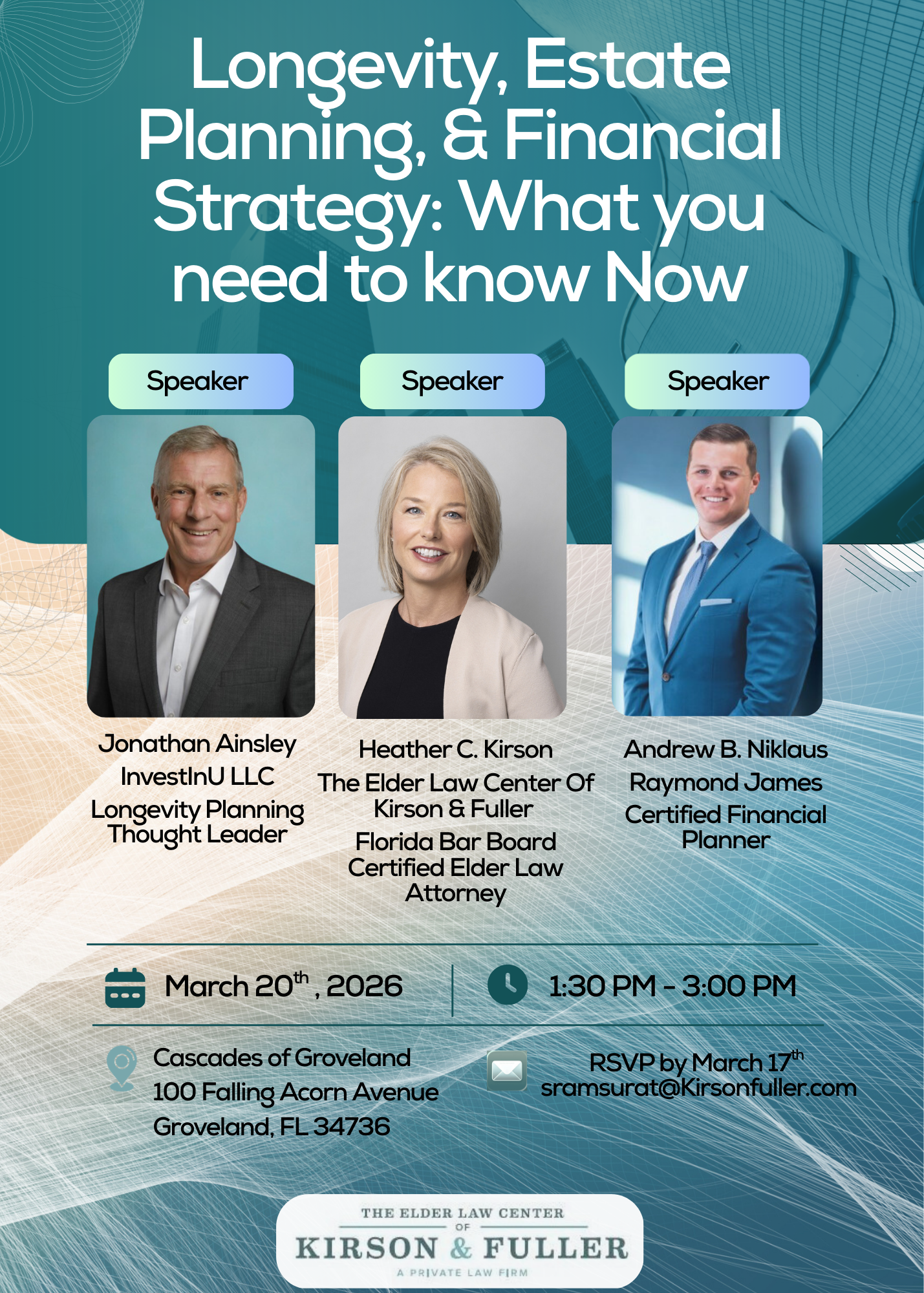 Planning for the future has never been more important. Join us for an educational seminar featuring local experts who will share insights on: